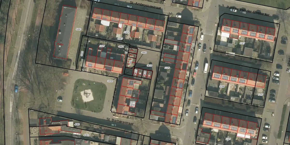 Het perceel waarop St. Barbarastraat 16-B staat heeft een oppervlakte van 39 m². Dit is een klein perceel. De perceeloppervlakte wordt geregistreerd door het Kadaster. Gedetailleerde informatie over de maten van dit perceel kunt u vinden in het rapport Kadastrale kaart met maatvoering van St. Barbarastraat 16-B.