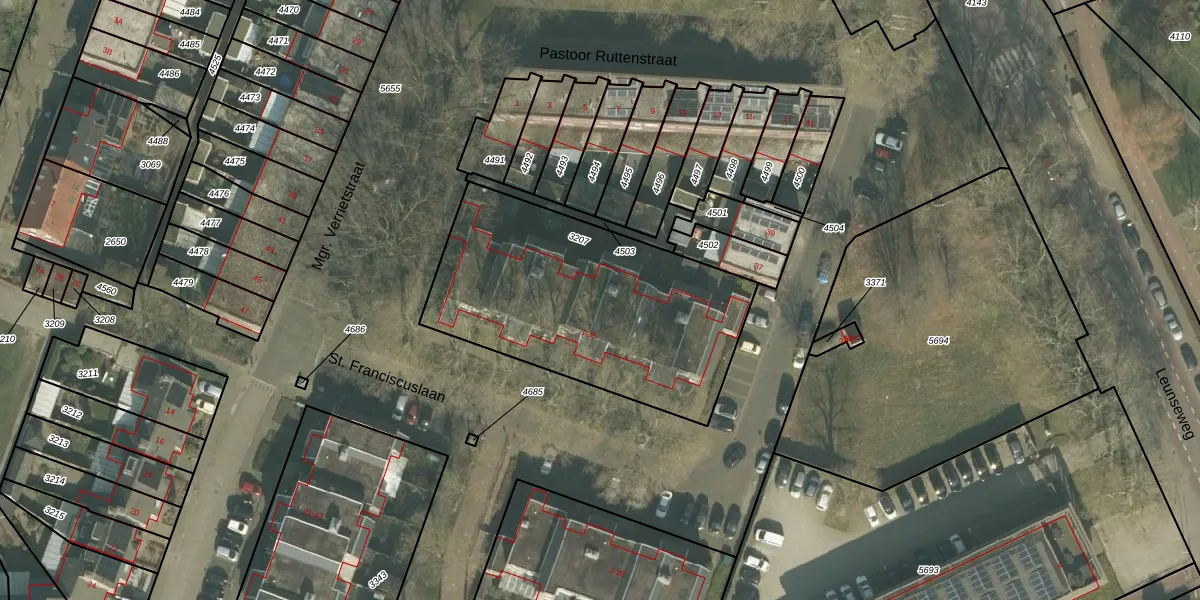 St. Franciscuslaan 31 is gelegen op kadastraal perceel VRY00L3207. Deze kadastrale aanduiding is uniek en wordt gebruikt door het Kadaster om eigendomsrechten en andere zakelijke rechten vast te leggen. Het perceel maakt onderdeel uit van de kadastrale gemeente Venray.