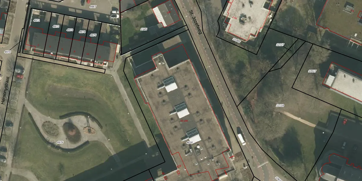 St. Jozefweg 110 is gelegen op kadastraal perceel VRY00L4630. Deze kadastrale aanduiding is uniek en wordt gebruikt door het Kadaster om eigendomsrechten en andere zakelijke rechten vast te leggen. Het perceel maakt onderdeel uit van de kadastrale gemeente Venray.