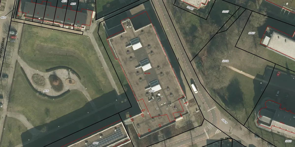 Het perceel waarop St. Jozefweg 186 staat heeft een oppervlakte van 4059 m². Dit is een zeer groot perceel. De perceeloppervlakte wordt geregistreerd door het Kadaster. Gedetailleerde informatie over de maten van dit perceel kunt u vinden in het rapport Kadastrale kaart met maatvoering van St. Jozefweg 186.