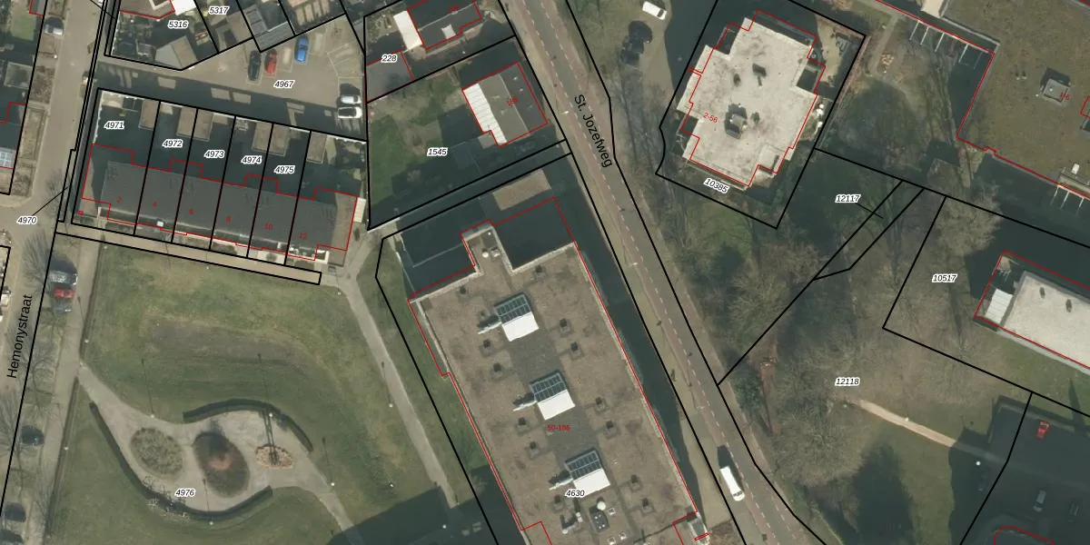 Het perceel waarop St. Jozefweg 84 staat heeft een oppervlakte van 4059 m². Dit is een zeer groot perceel. De perceeloppervlakte wordt geregistreerd door het Kadaster. Gedetailleerde informatie over de maten van dit perceel kunt u vinden in het rapport Kadastrale kaart met maatvoering van St. Jozefweg 84.