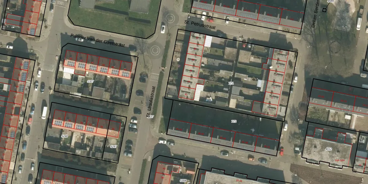 Het perceel waarop St. Ursulastraat 42 staat heeft een oppervlakte van 2515 m². Dit is een zeer groot perceel. De perceeloppervlakte wordt geregistreerd door het Kadaster. Gedetailleerde informatie over de maten van dit perceel kunt u vinden in het rapport Kadastrale kaart met maatvoering van St. Ursulastraat 42.
