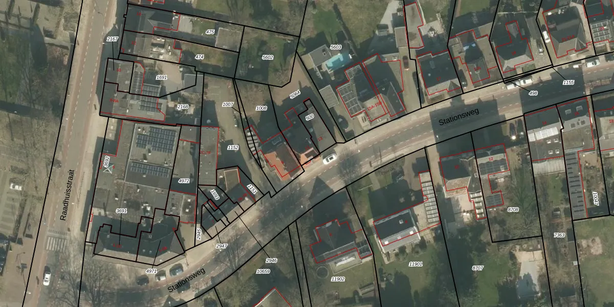 Het perceel waarop Stationsweg 11 staat heeft een oppervlakte van 350 m². Dit is een groot perceel. De perceeloppervlakte wordt geregistreerd door het Kadaster. Gedetailleerde informatie over de maten van dit perceel kunt u vinden in het rapport Kadastrale kaart met maatvoering van Stationsweg 11.