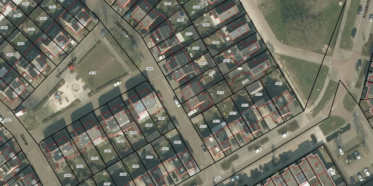 Het perceel waarop Sterremuur 21 staat heeft een oppervlakte van 230 m². Dit is een middelgroot perceel. De perceeloppervlakte wordt geregistreerd door het Kadaster. Gedetailleerde informatie over de maten van dit perceel kunt u vinden in het rapport Kadastrale kaart met maatvoering van Sterremuur 21.