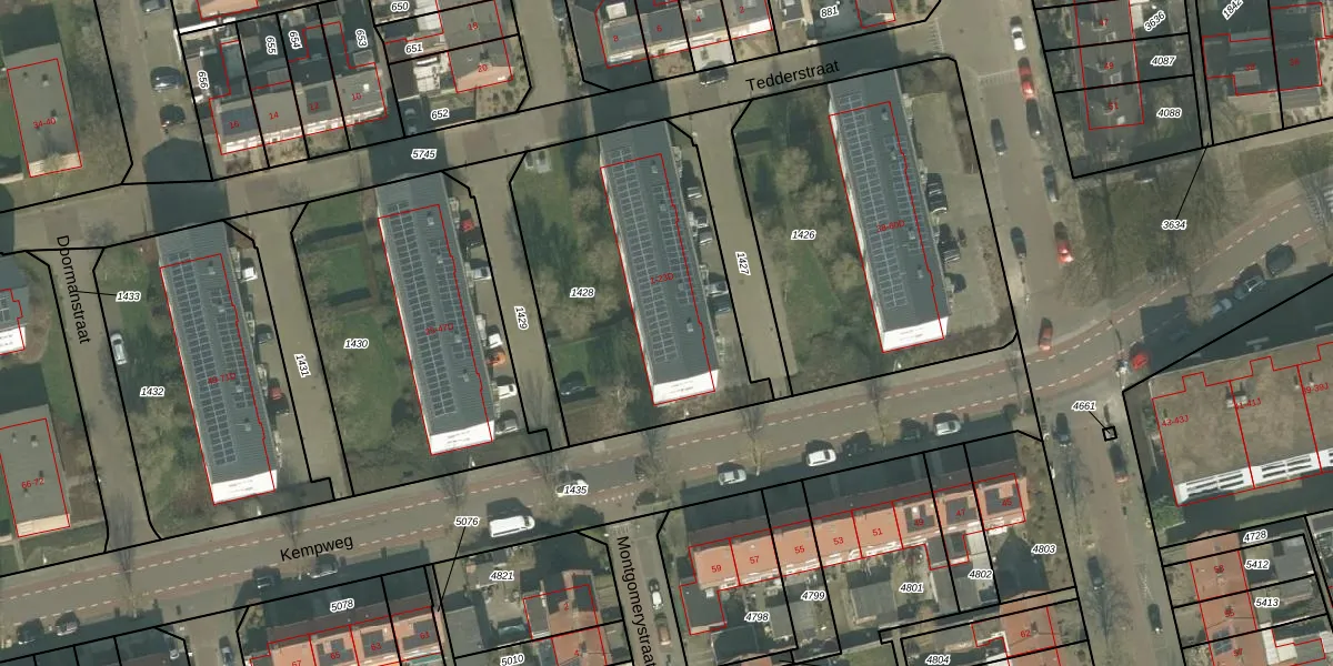 Het perceel waarop Tedderstraat 11 staat heeft een oppervlakte van 1272 m². Dit is een zeer groot perceel. De perceeloppervlakte wordt geregistreerd door het Kadaster. Gedetailleerde informatie over de maten van dit perceel kunt u vinden in het rapport Kadastrale kaart met maatvoering van Tedderstraat 11.