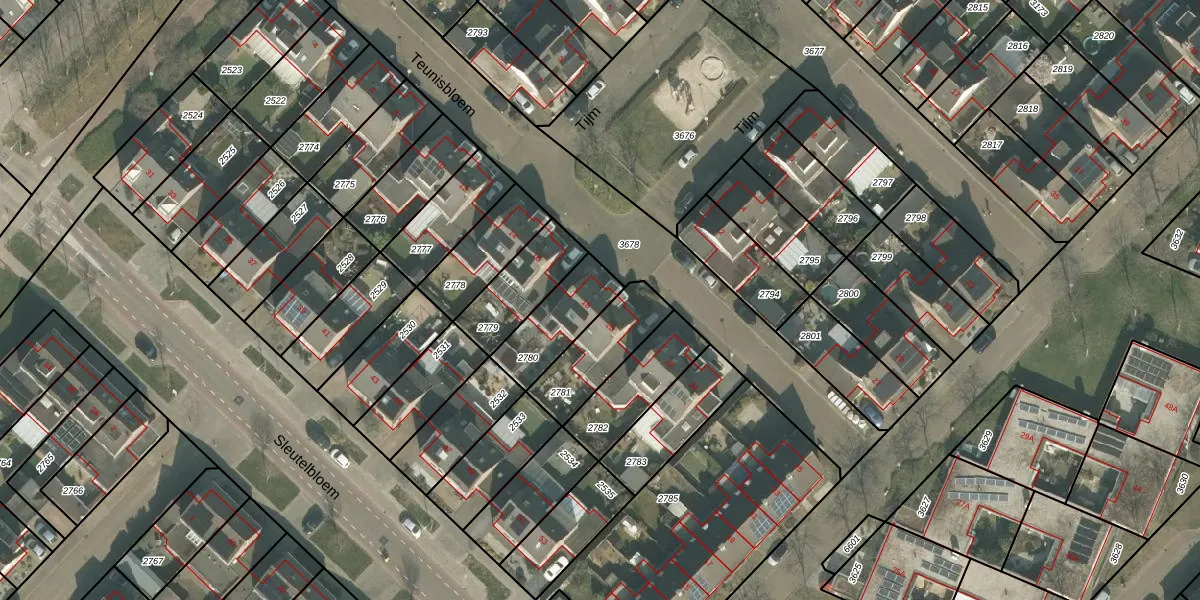 Teunisbloem 18 is gelegen op kadastraal perceel VRY00T2780. Deze kadastrale aanduiding is uniek en wordt gebruikt door het Kadaster om eigendomsrechten en andere zakelijke rechten vast te leggen. Het perceel maakt onderdeel uit van de kadastrale gemeente Venray.