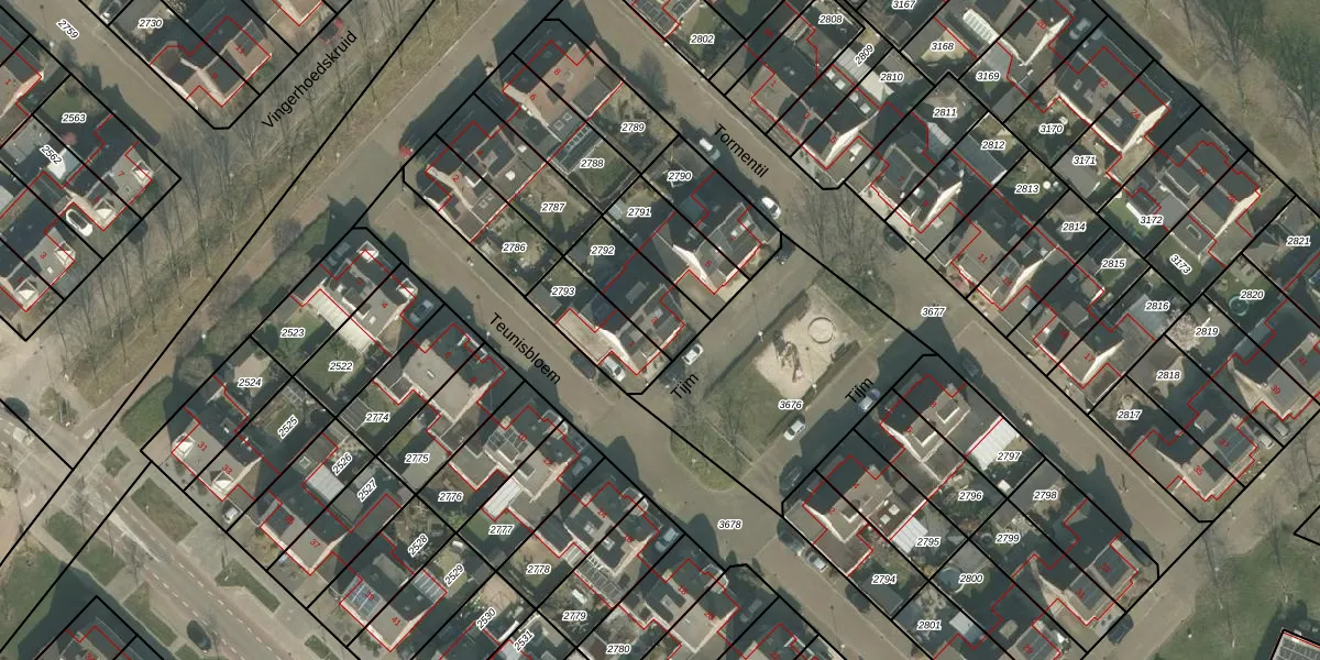 Het perceel waarop Tijm 3 staat heeft een oppervlakte van 195 m². Dit is een middelgroot perceel. De perceeloppervlakte wordt geregistreerd door het Kadaster. Gedetailleerde informatie over de maten van dit perceel kunt u vinden in het rapport Kadastrale kaart met maatvoering van Tijm 3.