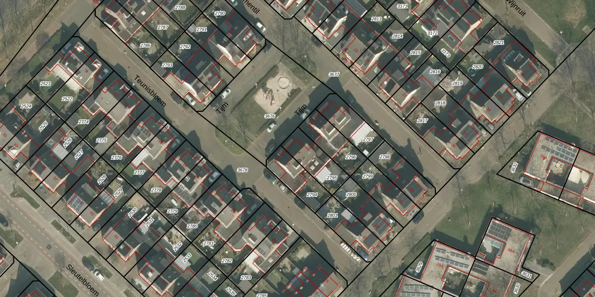 Gebruik de zoekbalk of klik op een perceel voor informatie over de adressen binnen dit perceel.
