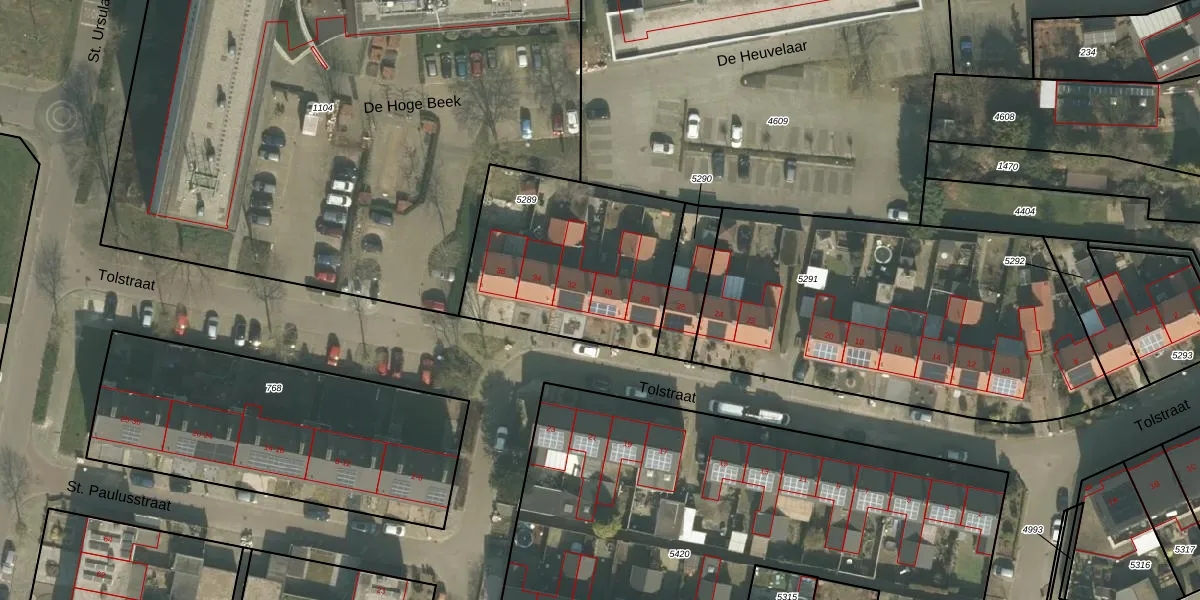 Tolstraat 30 is gelegen op kadastraal perceel VRY00L5289. Deze kadastrale aanduiding is uniek en wordt gebruikt door het Kadaster om eigendomsrechten en andere zakelijke rechten vast te leggen. Het perceel maakt onderdeel uit van de kadastrale gemeente Venray.
