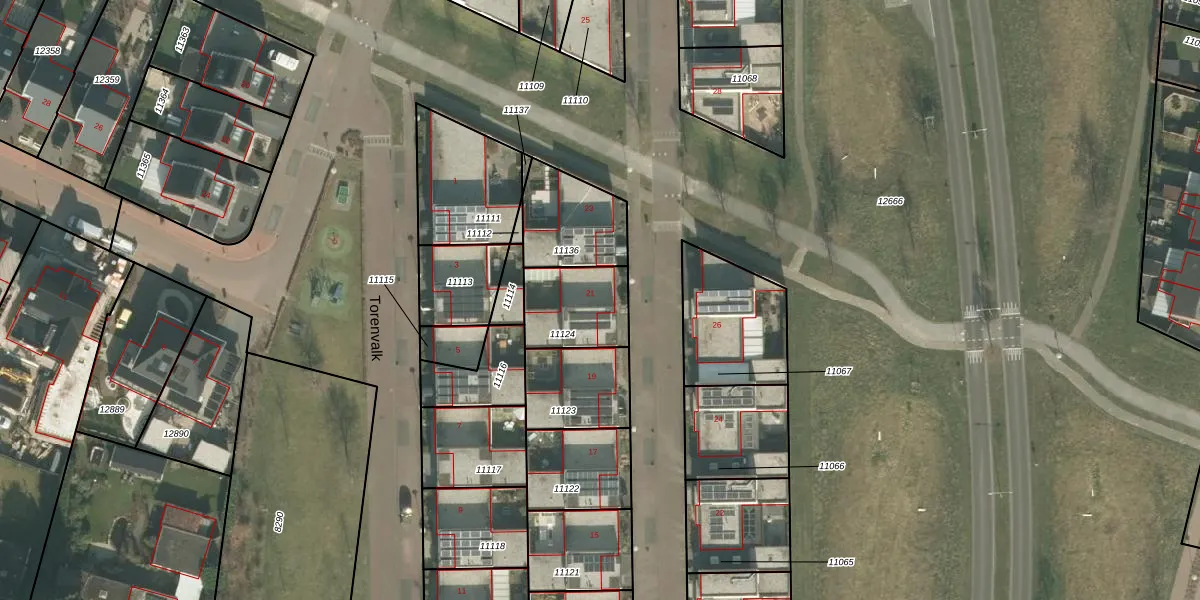 Het perceel waarop Torenvalk 21 staat heeft een oppervlakte van 235 m². Dit is een middelgroot perceel. De perceeloppervlakte wordt geregistreerd door het Kadaster. Gedetailleerde informatie over de maten van dit perceel kunt u vinden in het rapport Kadastrale kaart met maatvoering van Torenvalk 21.