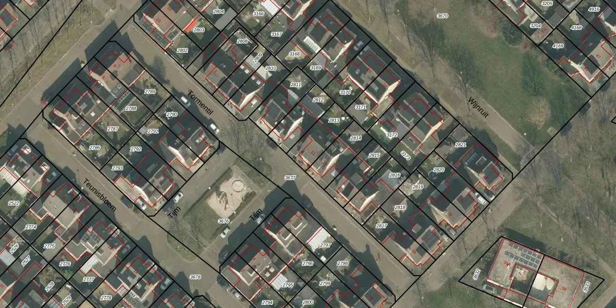 Gebruik de zoekbalk of klik op een perceel voor informatie over de adressen binnen dit perceel.