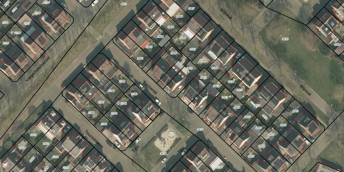 Gebruik de zoekbalk of klik op een perceel voor informatie over de adressen binnen dit perceel.