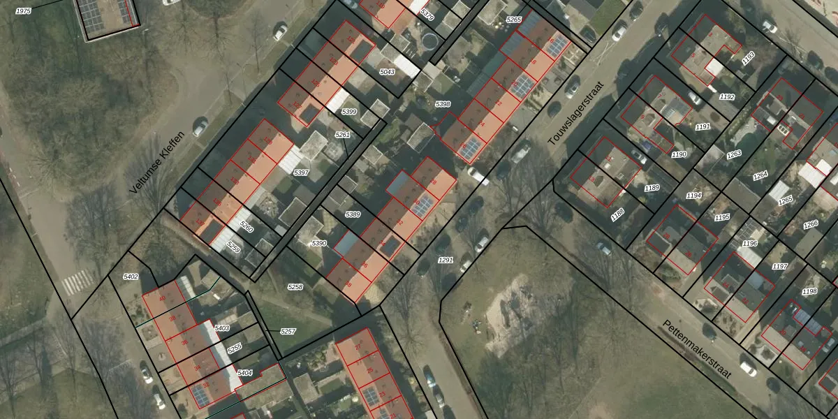 Het perceel waarop Touwslagerstraat 30 staat heeft een oppervlakte van 2074 m². Dit is een zeer groot perceel. De perceeloppervlakte wordt geregistreerd door het Kadaster. Gedetailleerde informatie over de maten van dit perceel kunt u vinden in het rapport Kadastrale kaart met maatvoering van Touwslagerstraat 30.