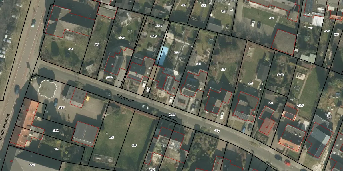 Tuinstraat 18 is gelegen op kadastraal perceel VRY00T510. Deze kadastrale aanduiding is uniek en wordt gebruikt door het Kadaster om eigendomsrechten en andere zakelijke rechten vast te leggen. Het perceel maakt onderdeel uit van de kadastrale gemeente Venray.