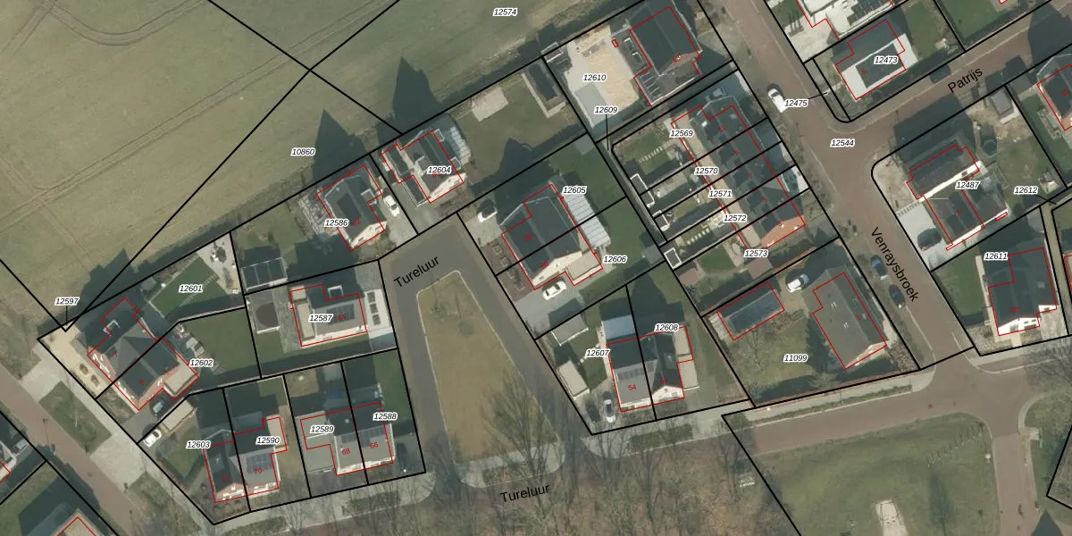 Tureluur 56 is gelegen op kadastraal perceel VRY00C12606. Deze kadastrale aanduiding is uniek en wordt gebruikt door het Kadaster om eigendomsrechten en andere zakelijke rechten vast te leggen. Het perceel maakt onderdeel uit van de kadastrale gemeente Venray.