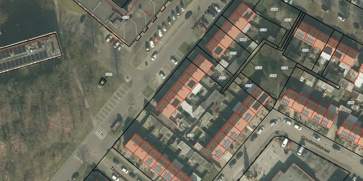 Veltumse Kleffen 103 is gelegen op kadastraal perceel VRY00L5118. Deze kadastrale aanduiding is uniek en wordt gebruikt door het Kadaster om eigendomsrechten en andere zakelijke rechten vast te leggen. Het perceel maakt onderdeel uit van de kadastrale gemeente Venray.