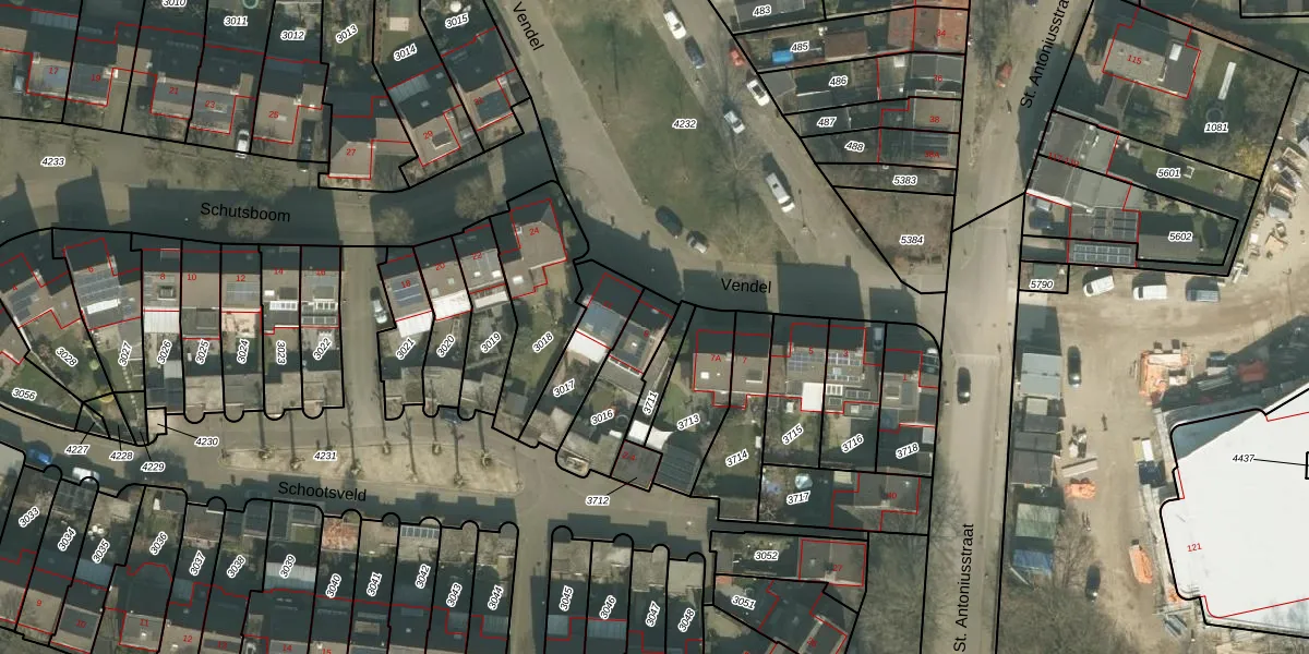 Het perceel waarop Vendel 9 staat heeft een oppervlakte van 215 m². Dit is een middelgroot perceel. De perceeloppervlakte wordt geregistreerd door het Kadaster. Gedetailleerde informatie over de maten van dit perceel kunt u vinden in het rapport Kadastrale kaart met maatvoering van Vendel 9.