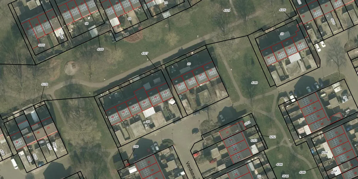 Het perceel waarop Verdistraat 26 staat heeft een oppervlakte van 760 m². Dit is een groot perceel. De perceeloppervlakte wordt geregistreerd door het Kadaster. Gedetailleerde informatie over de maten van dit perceel kunt u vinden in het rapport Kadastrale kaart met maatvoering van Verdistraat 26.