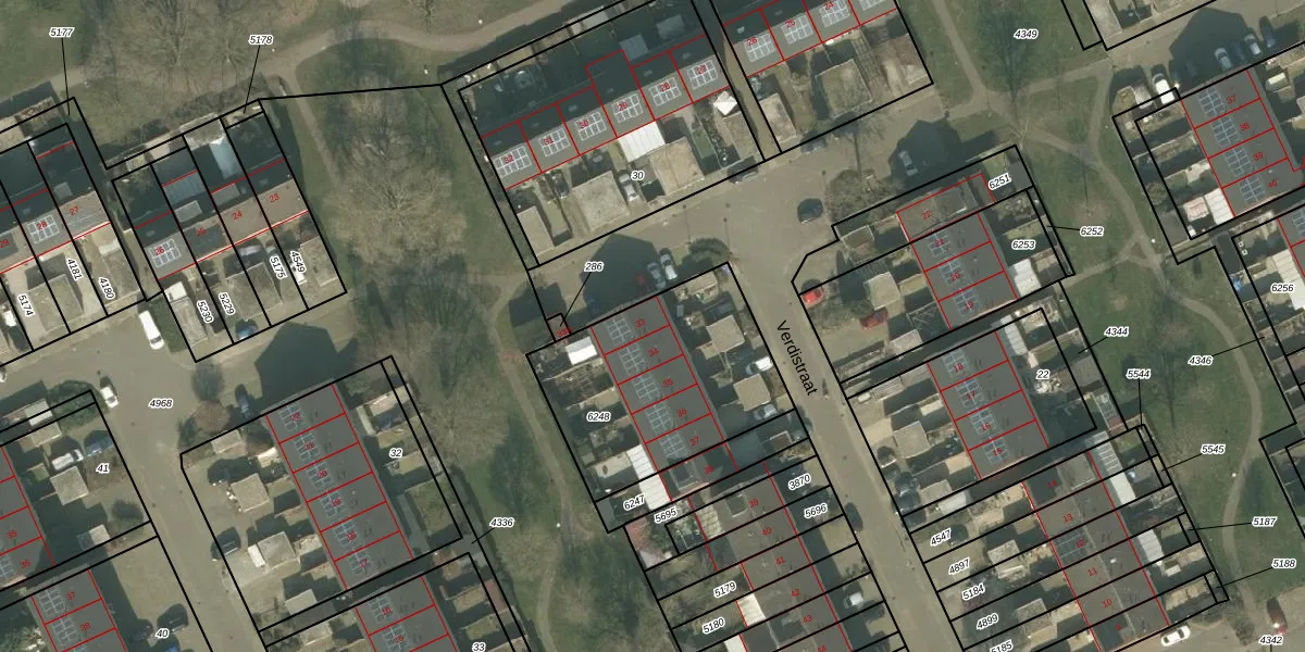Het perceel waarop Verdistraat 33 staat heeft een oppervlakte van 850 m². Dit is een groot perceel. De perceeloppervlakte wordt geregistreerd door het Kadaster. Gedetailleerde informatie over de maten van dit perceel kunt u vinden in het rapport Kadastrale kaart met maatvoering van Verdistraat 33.