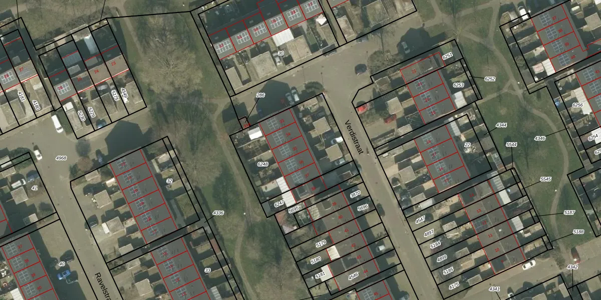 Het perceel waarop Verdistraat 35 staat heeft een oppervlakte van 850 m². Dit is een groot perceel. De perceeloppervlakte wordt geregistreerd door het Kadaster. Gedetailleerde informatie over de maten van dit perceel kunt u vinden in het rapport Kadastrale kaart met maatvoering van Verdistraat 35.