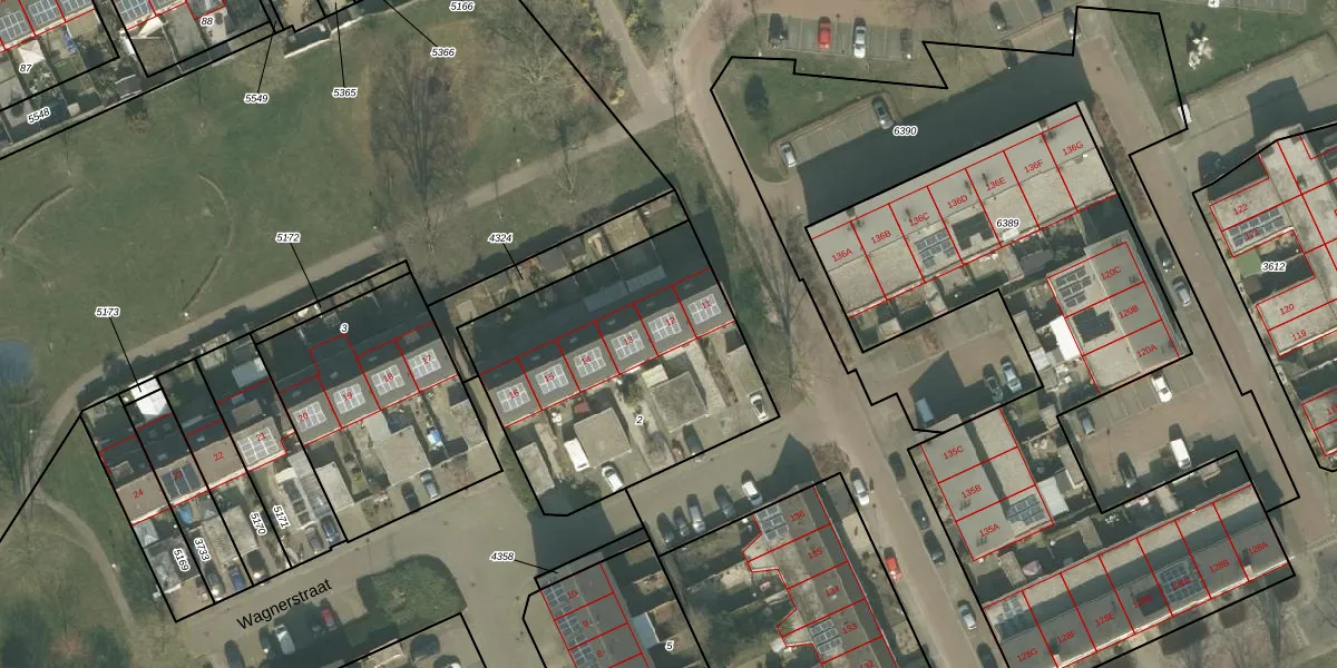 Het perceel waarop Wagnerstraat 12 staat heeft een oppervlakte van 1245 m². Dit is een zeer groot perceel. De perceeloppervlakte wordt geregistreerd door het Kadaster. Gedetailleerde informatie over de maten van dit perceel kunt u vinden in het rapport Kadastrale kaart met maatvoering van Wagnerstraat 12.