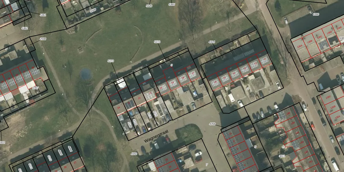 Het perceel waarop Wagnerstraat 19 staat heeft een oppervlakte van 840 m². Dit is een groot perceel. De perceeloppervlakte wordt geregistreerd door het Kadaster. Gedetailleerde informatie over de maten van dit perceel kunt u vinden in het rapport Kadastrale kaart met maatvoering van Wagnerstraat 19.