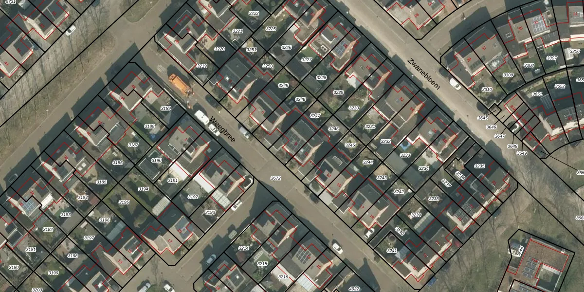 Gebruik de zoekbalk of klik op een perceel voor informatie over de adressen binnen dit perceel.