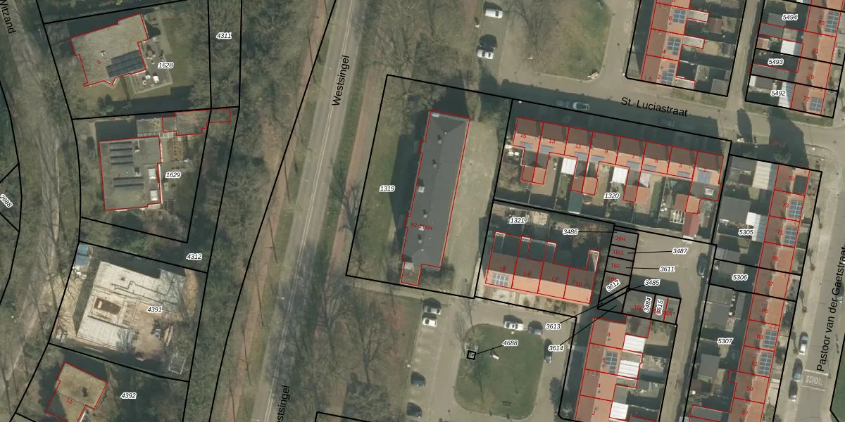Het perceel waarop het adres ligt is VRY00-L-1319. De afkorting 'VRY00' staat voor kadastrale gemeente Venray. Het perceel is kleiner dan gemiddeld in Venray. Het perceel is 1470 m² groot, terwijl het gemiddelde ligt op 6034,94 m². Het grootste perceel in de kadastrale gemeente is 1,79 km². Het kleinste perceel heeft een oppervlakte van 0 m². Er zijn 21 adressen aanwezig op het perceel. In de Basisregistratie Kadaster (BRK) werden de grenzen van het perceel geregistreerd op 17-09-2008.