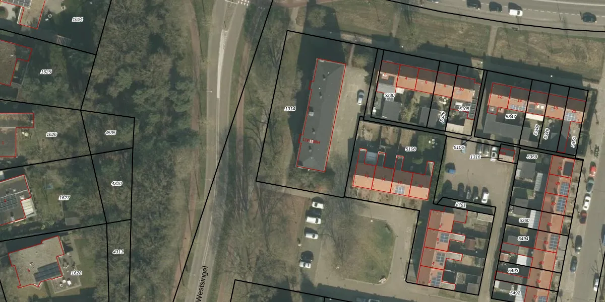 Het perceel waarop Westsingel 116 staat heeft een oppervlakte van 1525 m². Dit is een zeer groot perceel. De perceeloppervlakte wordt geregistreerd door het Kadaster. Gedetailleerde informatie over de maten van dit perceel kunt u vinden in het rapport Kadastrale kaart met maatvoering van Westsingel 116.