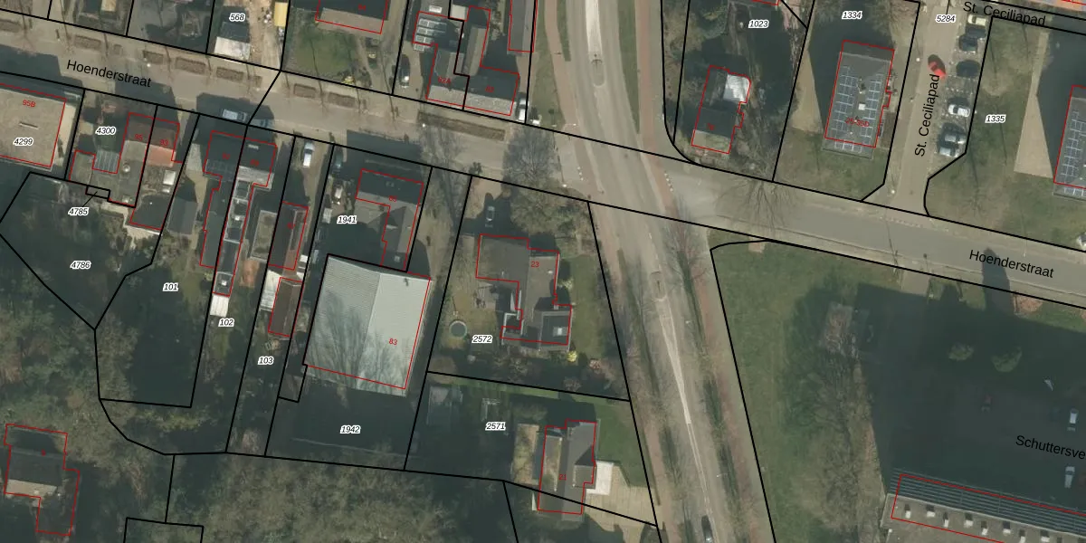 Gebruik de zoekbalk of klik op een perceel voor informatie over de adressen binnen dit perceel.