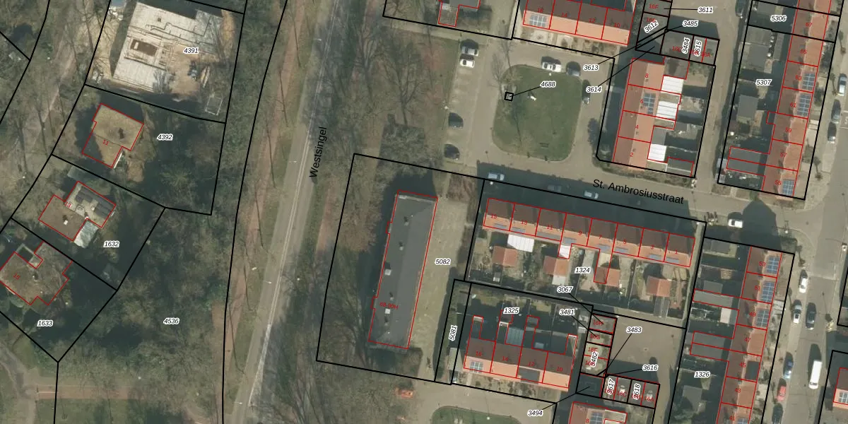 Het perceel waarop Westsingel 90-D staat heeft een oppervlakte van 1463 m². Dit is een zeer groot perceel. De perceeloppervlakte wordt geregistreerd door het Kadaster. Gedetailleerde informatie over de maten van dit perceel kunt u vinden in het rapport Kadastrale kaart met maatvoering van Westsingel 90-D.
