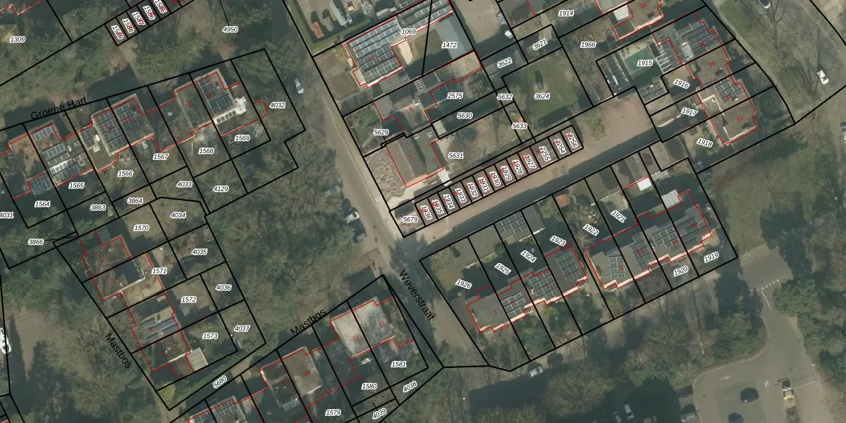 Het perceel waarop Weverstraat 7-N staat heeft een oppervlakte van 19 m². Dit is een klein perceel. De perceeloppervlakte wordt geregistreerd door het Kadaster. Gedetailleerde informatie over de maten van dit perceel kunt u vinden in het rapport Kadastrale kaart met maatvoering van Weverstraat 7-N.