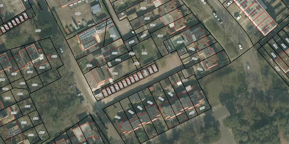 Het perceel waarop Weverstraat 7-C staat heeft een oppervlakte van 30 m². Dit is een klein perceel. De perceeloppervlakte wordt geregistreerd door het Kadaster. Gedetailleerde informatie over de maten van dit perceel kunt u vinden in het rapport Kadastrale kaart met maatvoering van Weverstraat 7-C.