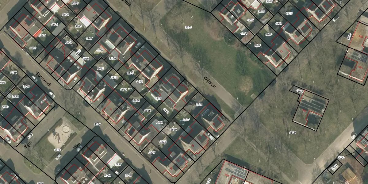 Het perceel waarop Wijnruit 28 staat heeft een oppervlakte van 228 m². Dit is een middelgroot perceel. De perceeloppervlakte wordt geregistreerd door het Kadaster. Gedetailleerde informatie over de maten van dit perceel kunt u vinden in het rapport Kadastrale kaart met maatvoering van Wijnruit 28.