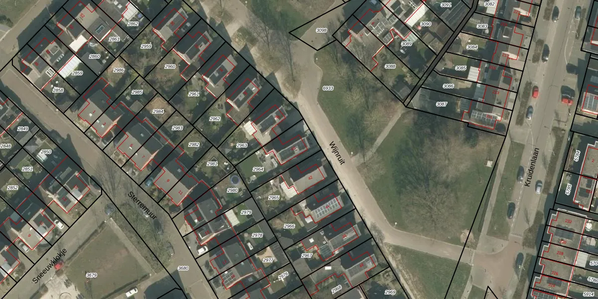Het perceel waarop Wijnruit 40 staat heeft een oppervlakte van 310 m². Dit is een groot perceel. De perceeloppervlakte wordt geregistreerd door het Kadaster. Gedetailleerde informatie over de maten van dit perceel kunt u vinden in het rapport Kadastrale kaart met maatvoering van Wijnruit 40.