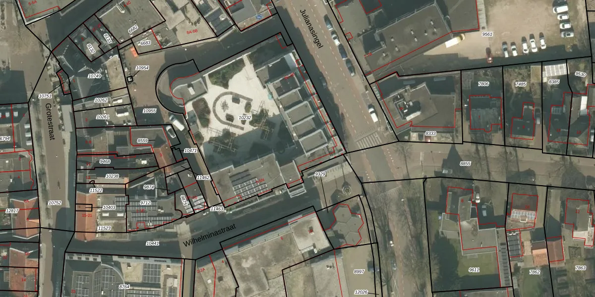 Het perceel waarop Wilhelminastraat 5-M staat heeft een oppervlakte van 2125 m². Dit is een zeer groot perceel. De perceeloppervlakte wordt geregistreerd door het Kadaster. Gedetailleerde informatie over de maten van dit perceel kunt u vinden in het rapport Kadastrale kaart met maatvoering van Wilhelminastraat 5-M.