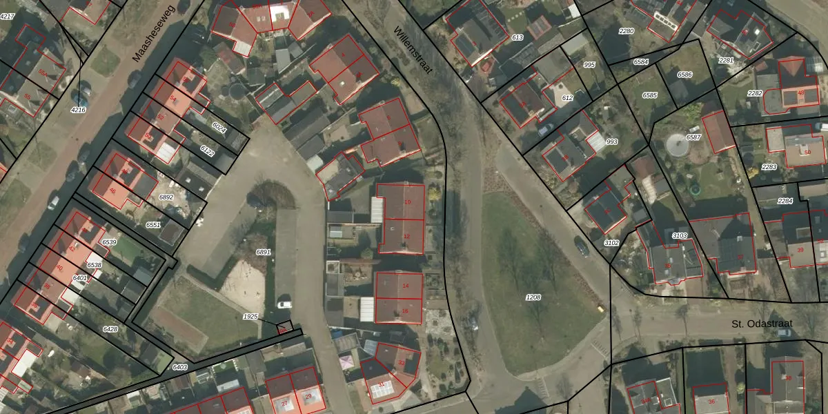 Willemstraat 10 is gelegen op kadastraal perceel VRY00T6891. Deze kadastrale aanduiding is uniek en wordt gebruikt door het Kadaster om eigendomsrechten en andere zakelijke rechten vast te leggen. Het perceel maakt onderdeel uit van de kadastrale gemeente Venray.