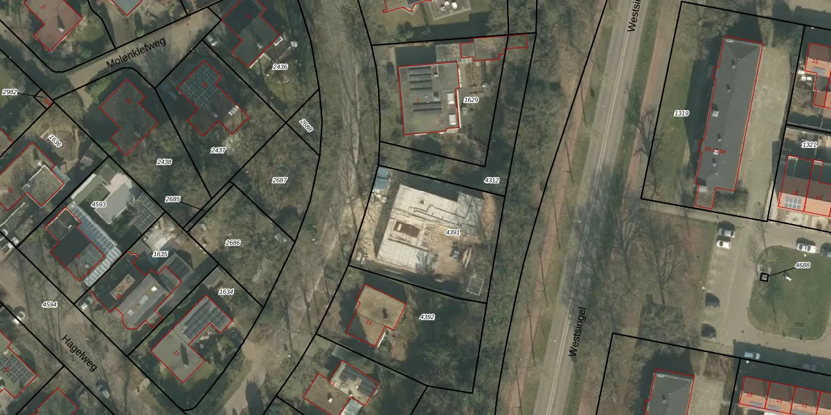 Gebruik de zoekbalk of klik op een perceel voor informatie over de adressen binnen dit perceel.