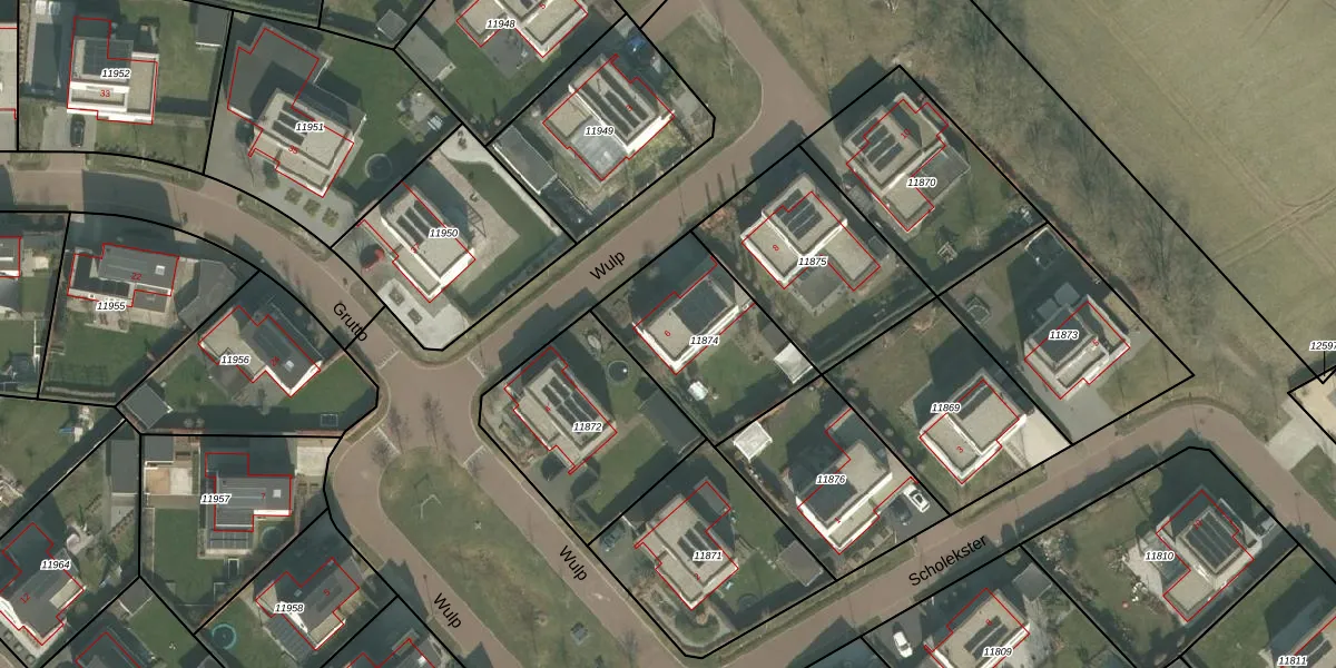 Het perceel waarop Wulp 6 staat heeft een oppervlakte van 545 m². Dit is een groot perceel. De perceeloppervlakte wordt geregistreerd door het Kadaster. Gedetailleerde informatie over de maten van dit perceel kunt u vinden in het rapport Kadastrale kaart met maatvoering van Wulp 6.