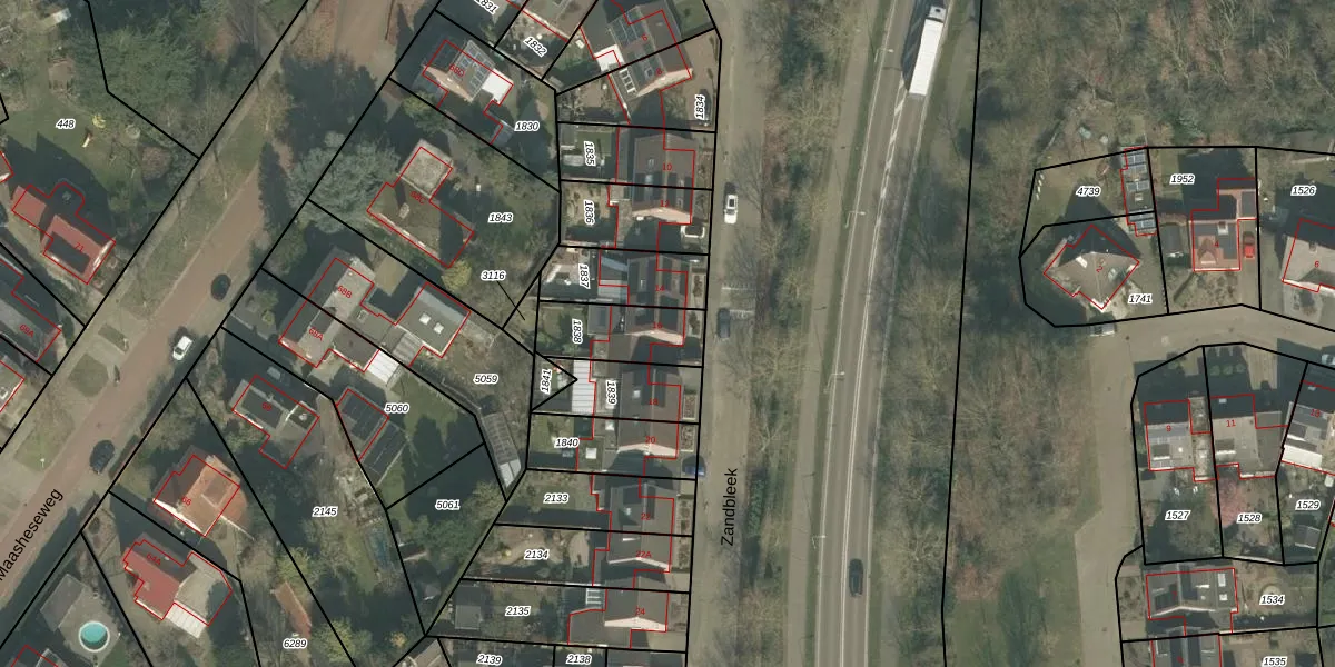 Gebruik de zoekbalk of klik op een perceel voor informatie over de adressen binnen dit perceel.