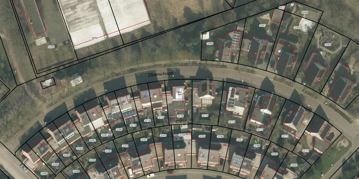 Het perceel waarop Zilverschoon 39 staat heeft een oppervlakte van 354 m². Dit is een groot perceel. De perceeloppervlakte wordt geregistreerd door het Kadaster. Gedetailleerde informatie over de maten van dit perceel kunt u vinden in het rapport Kadastrale kaart met maatvoering van Zilverschoon 39.