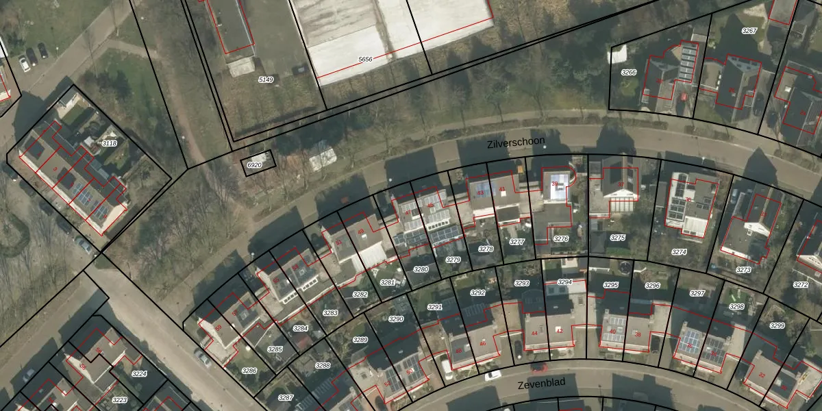 Gebruik de zoekbalk of klik op een perceel voor informatie over de adressen binnen dit perceel.