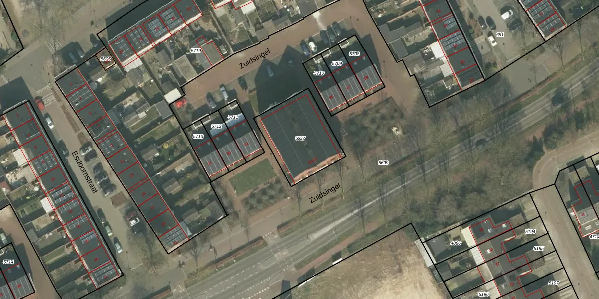 Het perceel waarop Zuidsingel 59 staat heeft een oppervlakte van 548 m². Dit is een groot perceel. De perceeloppervlakte wordt geregistreerd door het Kadaster. Gedetailleerde informatie over de maten van dit perceel kunt u vinden in het rapport Kadastrale kaart met maatvoering van Zuidsingel 59.