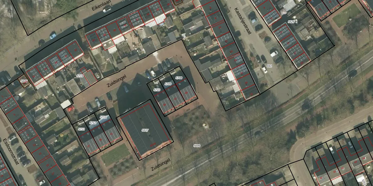 Het perceel waarop Zuidsingel 69 staat heeft een oppervlakte van 136 m². Dit is een middelgroot perceel. De perceeloppervlakte wordt geregistreerd door het Kadaster. Gedetailleerde informatie over de maten van dit perceel kunt u vinden in het rapport Kadastrale kaart met maatvoering van Zuidsingel 69.