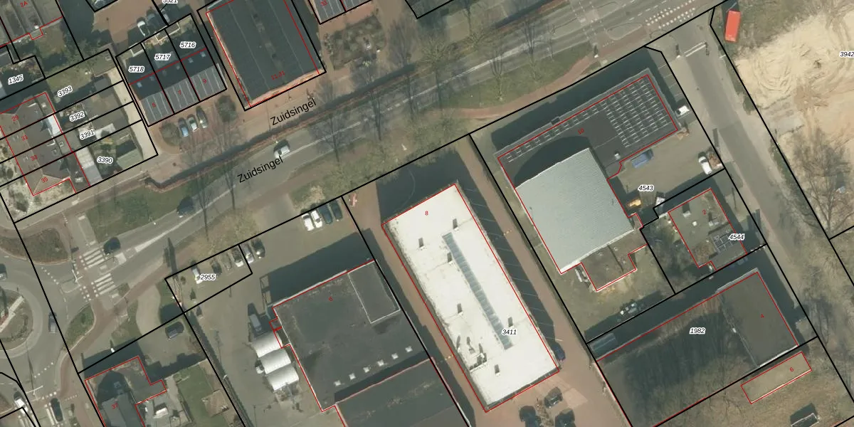Het perceel waarop Zuidsingel 8 staat heeft een oppervlakte van 3467 m². Dit is een zeer groot perceel. De perceeloppervlakte wordt geregistreerd door het Kadaster. Gedetailleerde informatie over de maten van dit perceel kunt u vinden in het rapport Kadastrale kaart met maatvoering van Zuidsingel 8.