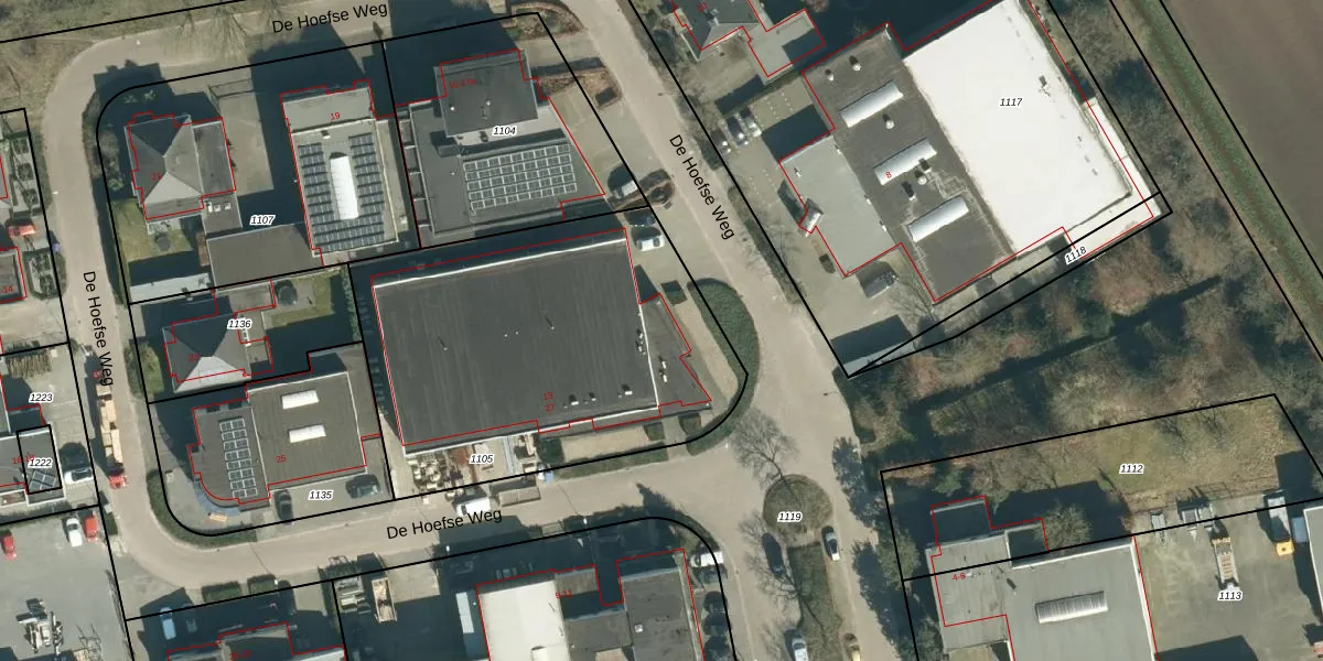 Het perceel waarop De Hoefse Weg 13 staat heeft een oppervlakte van 1876 m². Dit is een zeer groot perceel. De perceeloppervlakte wordt geregistreerd door het Kadaster. Gedetailleerde informatie over de maten van dit perceel kunt u vinden in het rapport Kadastrale kaart met maatvoering van De Hoefse Weg 13.