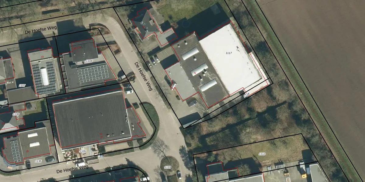 Het perceel waarop De Hoefse Weg 8 staat heeft een oppervlakte van 3666 m². Dit is een zeer groot perceel. De perceeloppervlakte wordt geregistreerd door het Kadaster. Gedetailleerde informatie over de maten van dit perceel kunt u vinden in het rapport Kadastrale kaart met maatvoering van De Hoefse Weg 8.