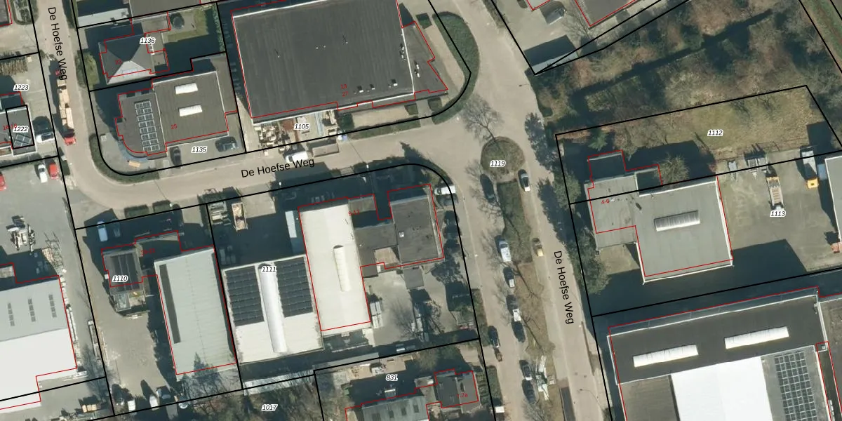 Het perceel waarop De Hoefse Weg 9-a staat heeft een oppervlakte van 2525 m². Dit is een zeer groot perceel. De perceeloppervlakte wordt geregistreerd door het Kadaster. Gedetailleerde informatie over de maten van dit perceel kunt u vinden in het rapport Kadastrale kaart met maatvoering van De Hoefse Weg 9-a.