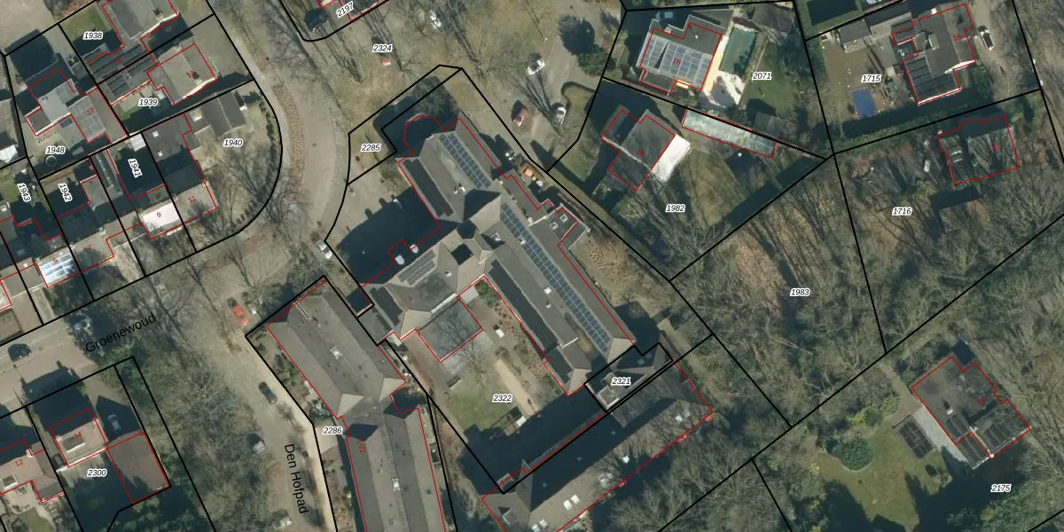 Het perceel waarop Den Hofpad 1-k-5106 staat heeft een oppervlakte van 2834 m². Dit is een zeer groot perceel. De perceeloppervlakte wordt geregistreerd door het Kadaster. Gedetailleerde informatie over de maten van dit perceel kunt u vinden in het rapport Kadastrale kaart met maatvoering van Den Hofpad 1-k-5106.