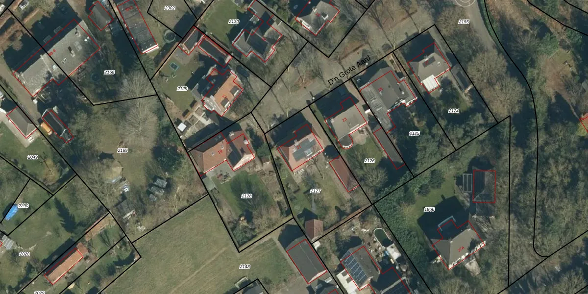 D'n Grote Aard 21 is gelegen op kadastraal perceel VSM01B2127. Deze kadastrale aanduiding is uniek en wordt gebruikt door het Kadaster om eigendomsrechten en andere zakelijke rechten vast te leggen. Het perceel maakt onderdeel uit van de kadastrale gemeente Vessem.